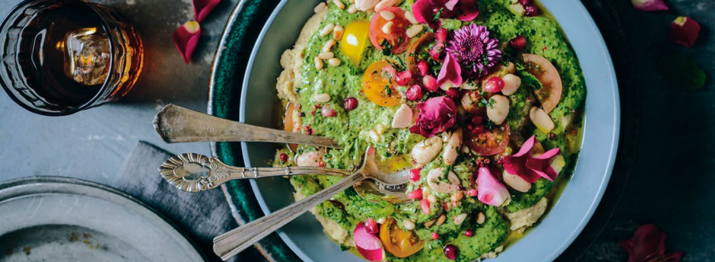 Huisegemaakte mini ravioli gevuld met gehakt, geserveerd met knoflookyoghurt en tomatensaus