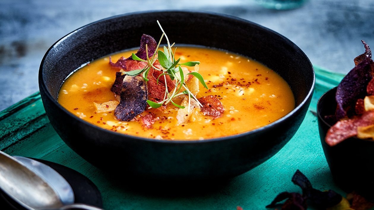 Gebakken kippenfilet met verse groenten in kerriesaus